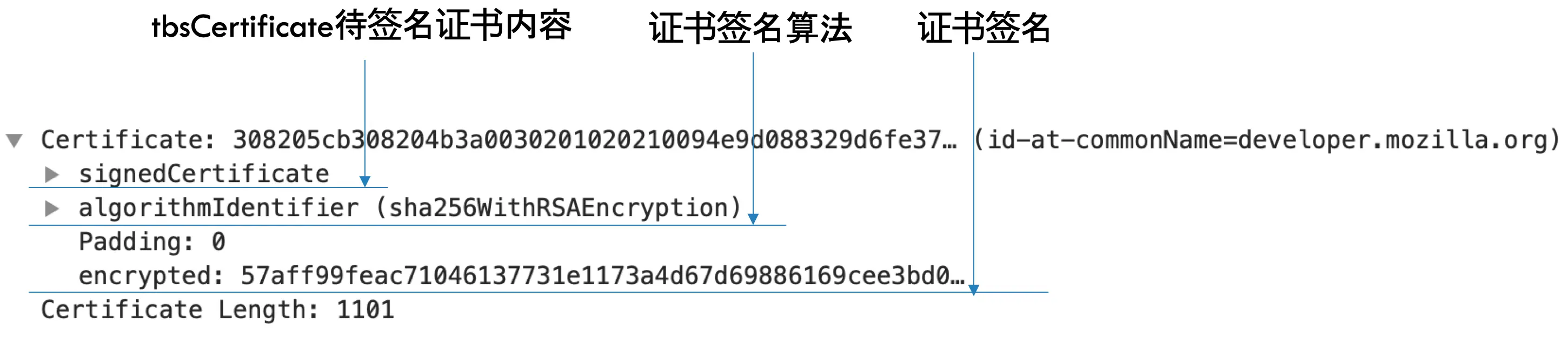 我们先来看一下tbsCertificate里面有什么内容,如下图所示: