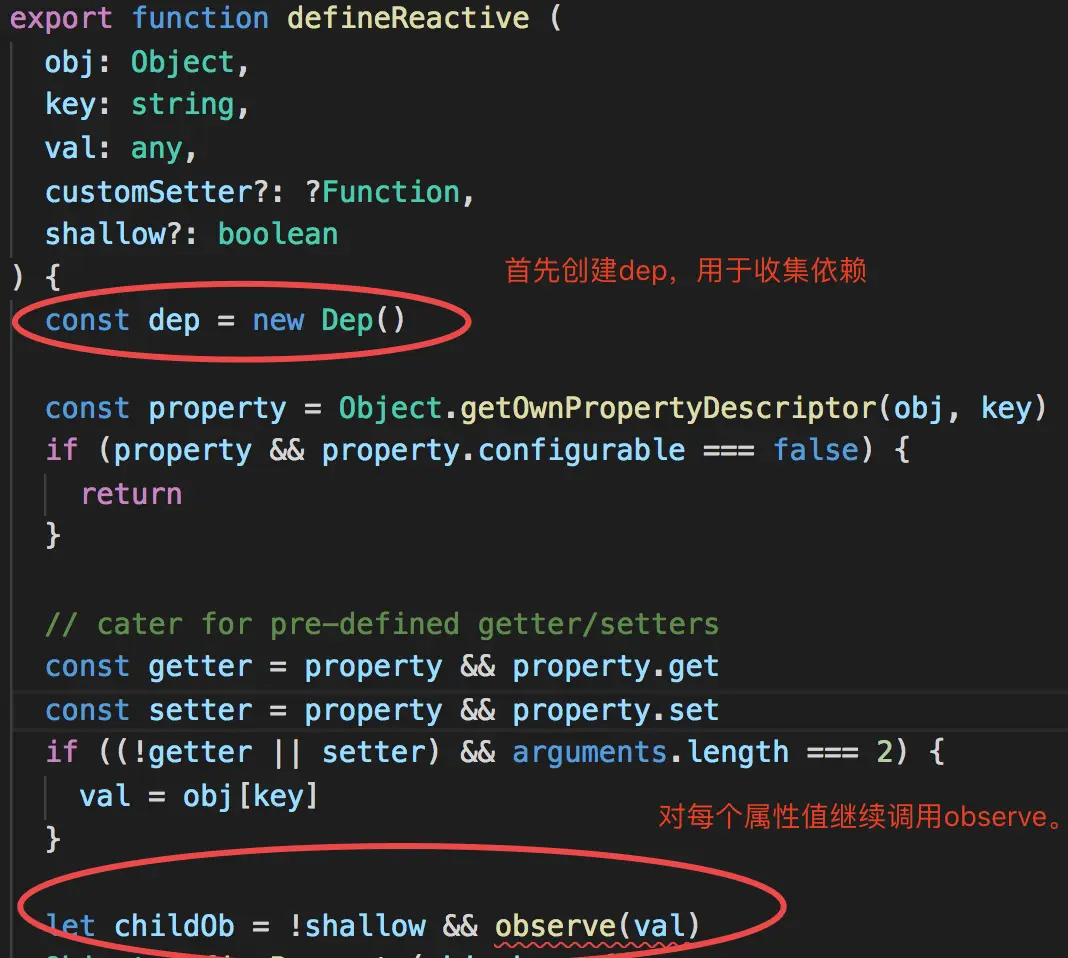 - 为每个属性实例化一个dep依赖收集器,用于收集该属性的相关依赖。