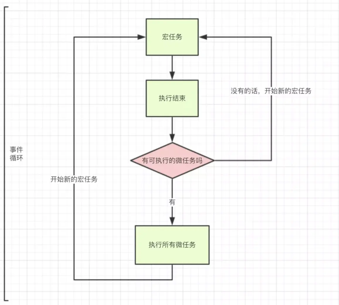 macrotask 和 microtask 表示异步任务的两种分类。JS 引擎会将所有任务按照类别分到这两个队列中,首先在 macrotask 的队列(这个队列也被叫做 task queue)中取出第一个任务,执行完毕后取出 microtask 队列中的所有任务顺序执行;之后再取 macrotask 任务,周而复始,直至两个队列的任务都取完。宏任务和微任务之间的关系可以用下图表示: