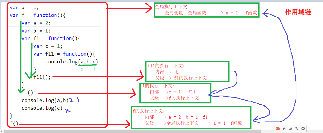 - 执行上下文的作用:函数(代码)在执行的过程中,需要的一切数据都由执行上下文来提供。数据包含:变量,函数。