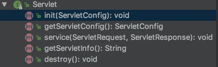 可以看见servlet就是一个接口;接口就是规定了一些规范,使得一些具有某些共性的类都能实现这个接口,从而都遵循某些规范。