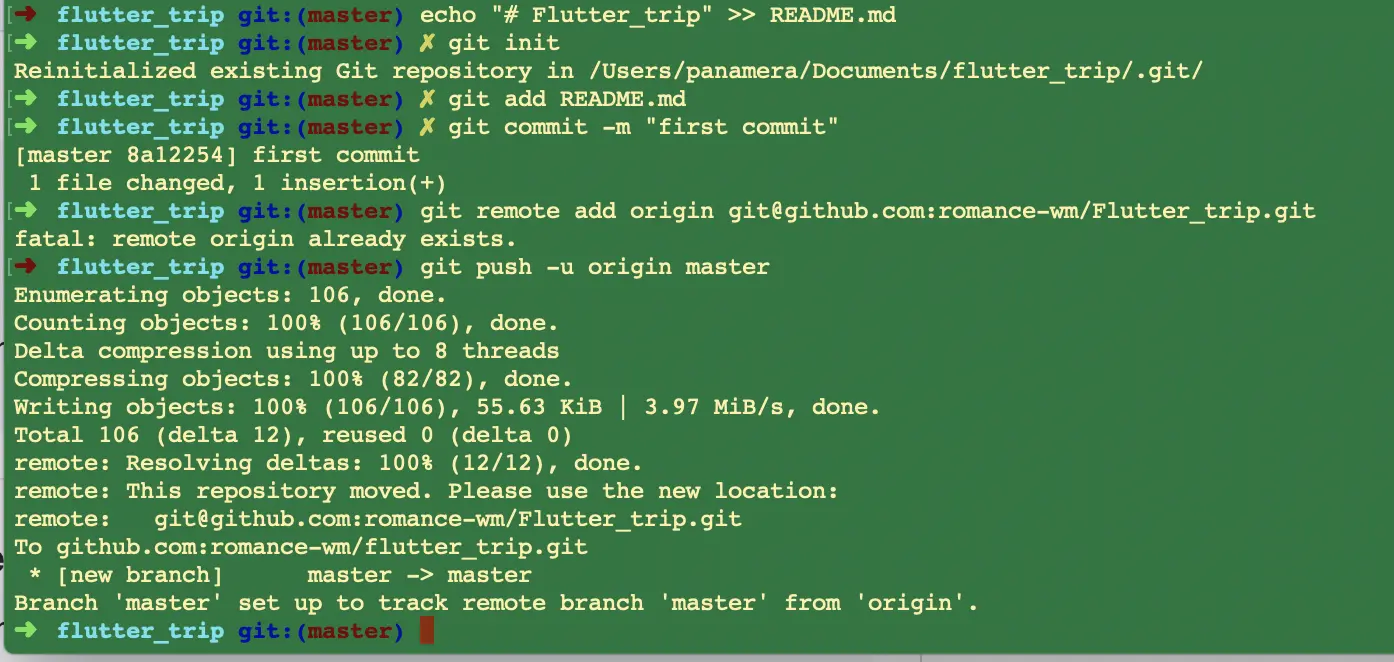 $ cd /Users/panamera/Documents/flutter_trip -