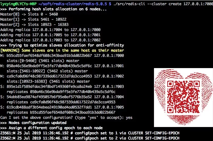 ./redis-cli --cluster create 127.0.0.1:7000 127.0.0.1:7001 127.0.0.1:7002 127.0.0.1:7003 127.0.0.1:7004 127.0.0.1:7005 --cluster-replicas 1