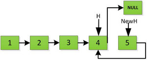 这是第二次递归返回时的链表,此时4、5已经reverse,H在3时不需要考虑5的情况,只需要把3和4reverse。