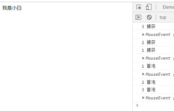 冒泡和捕获并不是一个公司提出的。 冒泡是由微软提出的,顾名思义呢,就像水里的水泡,从水底冒到水面。代码的事件冒泡类似,从触发事件的元素,开始向上传播,该元素的子元素的祖先带的同种事件都被会被触发。以下是个极其简单的例子。