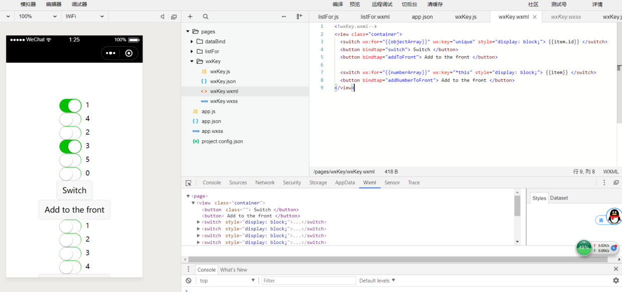 wx:key的高级特性。这个很重要,因为在app上经常有上拉,下拉加载,我们如果不使用这个特性的很可能列表就乱了。源码:https://github.com/limingios/wxProgram.git 中的No.8