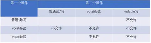4.1、volatile重排序规则表