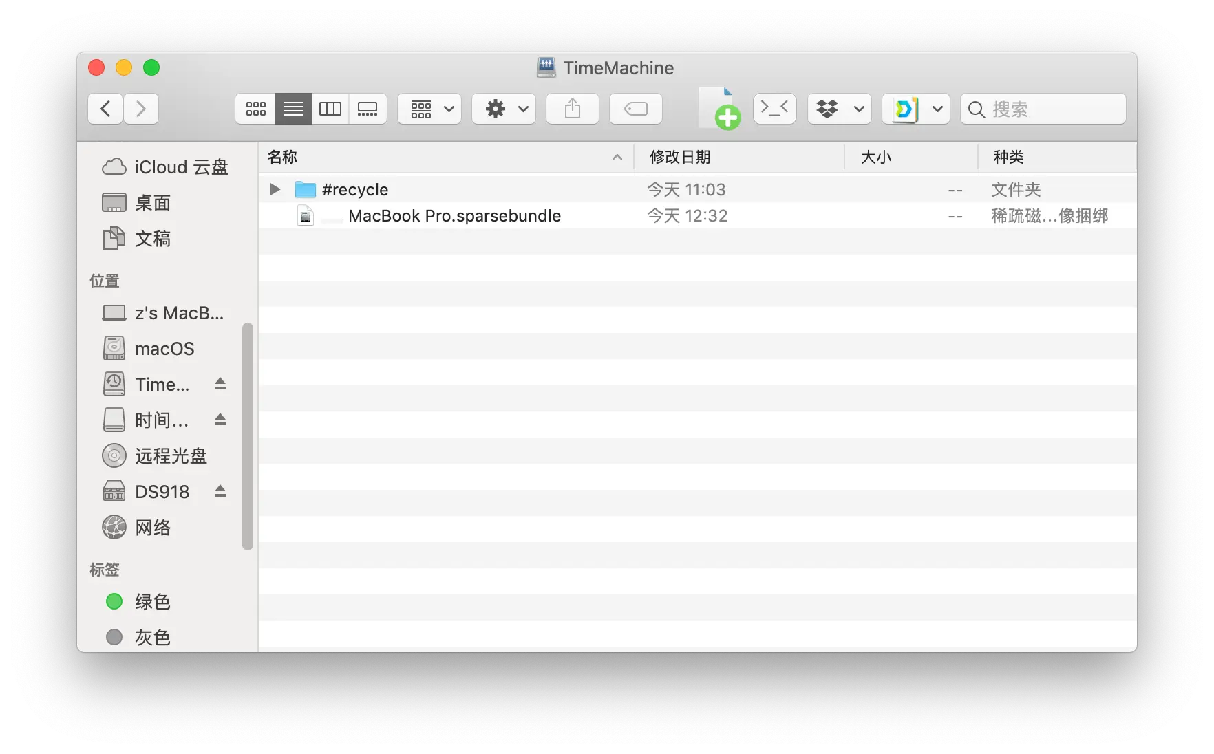这个时候其实搜索了一些资料,但是没啥有价值的信息(搜索 TimeMachine 这些关键词的确范围有限)。于是就测试了一下使用网络驱动器备份,想了解这种情况是如何存储的,如下: