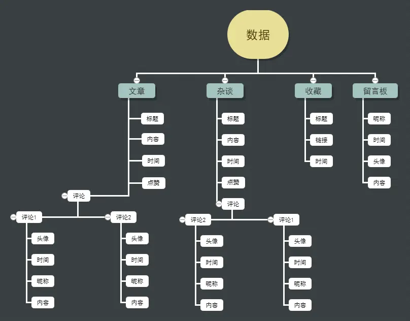 其他三种表同理进行设计,然后将这四种数据模型导出给router.js,让其进行增删查改的数据接口设计