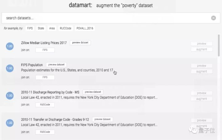 但没关系,系统自带数据集搜索工具datamart,输入关键字,可以查找相关的数据集。