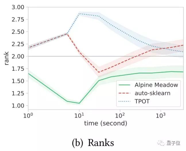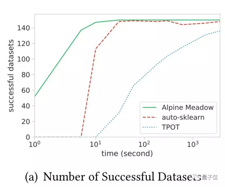 绿色是Alpine Meadow找出第一个方案需要的时间。在成功的数据集数量相同的情况下,用时远低于其他算法: