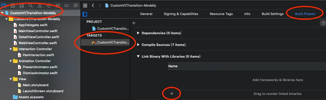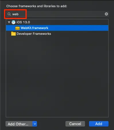 如下图,手动添加WebKit.framework