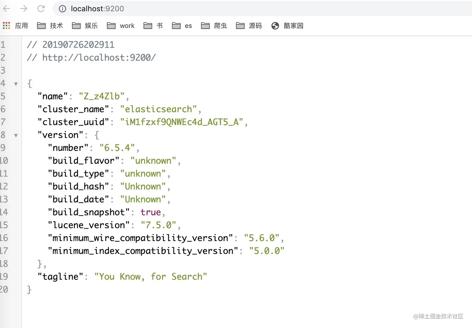 启动后,访问http://localhost:9200/