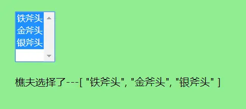 data:{ select: [] }多选下拉框和单选下拉框区别不大, 需要在select元素上添加multiple, 多选的时候需要按ctrl键