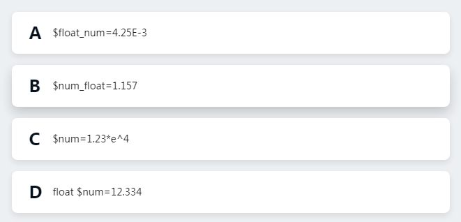 下列正确表示PHP的浮点型数据的是()(选择两项)