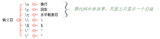 - 如果用上引号做定界符, 那么文字中的双引号, 都需要转义...