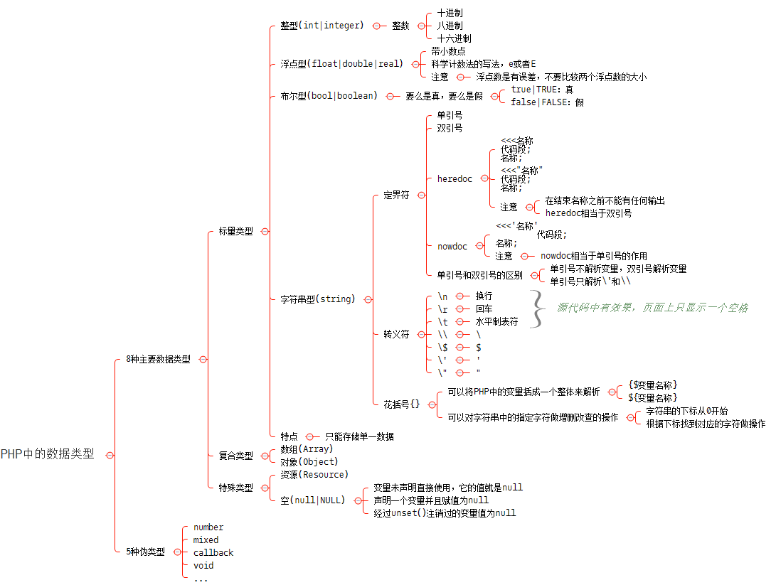 定界符之中 - 有四种, 单引号, 双引号, heredoc, nowdoc