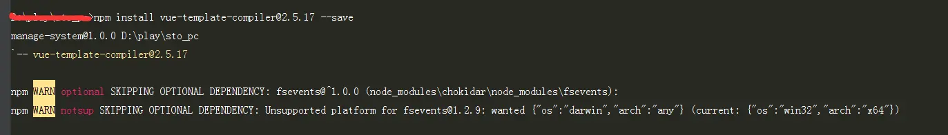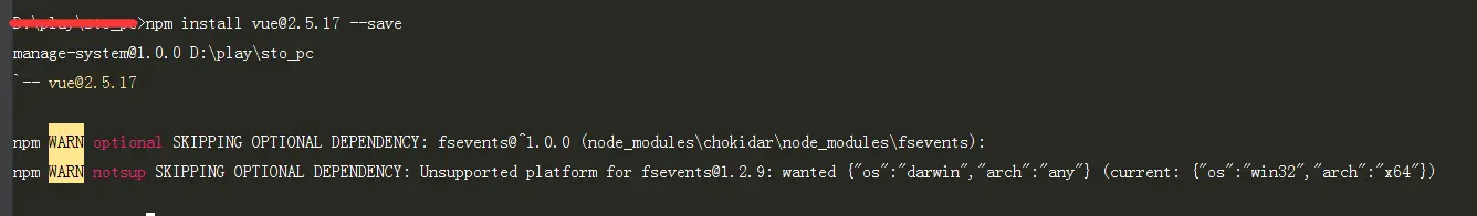 继续安装 vue@2.5.17 如图