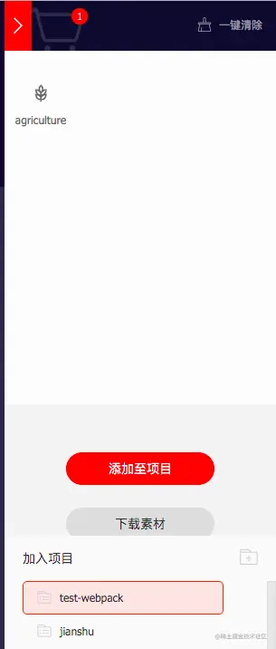 - 点击购物车将图标库加入项目