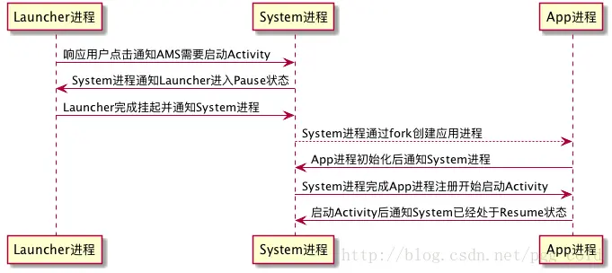 - 当点击桌面图标,就会利用Launcher通过Binder进程间通信机制通知ActivityManagerService(AMS),它要启动一个Activity;