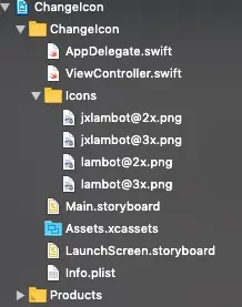 这里我们就将 info.plist 编辑完成了,下面我们将对应的图片加入到项目中,这里的图片需要直接加到项目中,不能放在 Assets.xcassets 中。