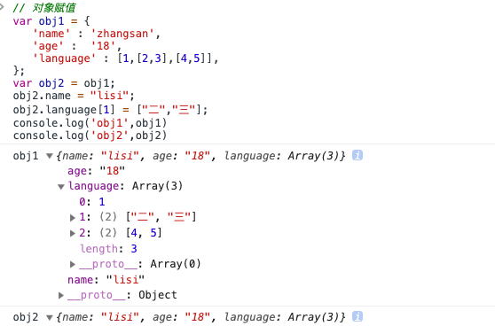 obj3.language[1] = ["二","三"];