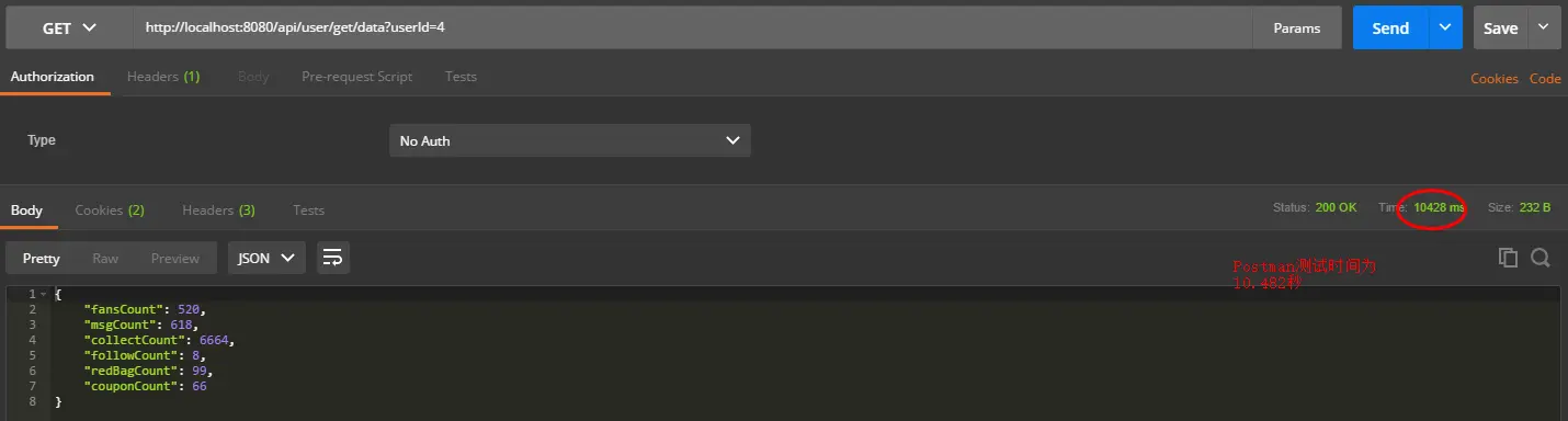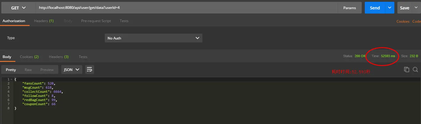 我们启动项目:开启调用 http://localhost:8080/api/user/get/data?userId=4