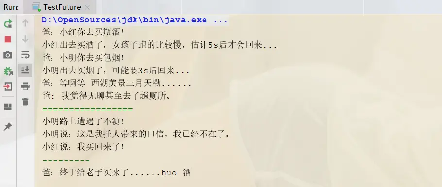 //小明买烟任务,这里的future1代表的是小明未来买东西会发生的事,返回值是小明买东西的结果
