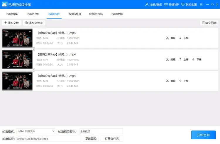以上就是使用迅捷视频转换器把多个mp4视频文件快速合并成一个视频的方法了。