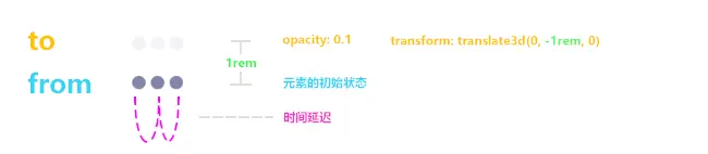 - 三个圆点动画存在“时差”(animation-delay)