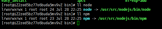 sudo ln -s /usr/src/nodejs/bin/npm /usr/bin/npm