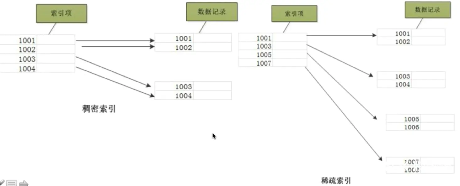 密集索引 和 稀疏索引