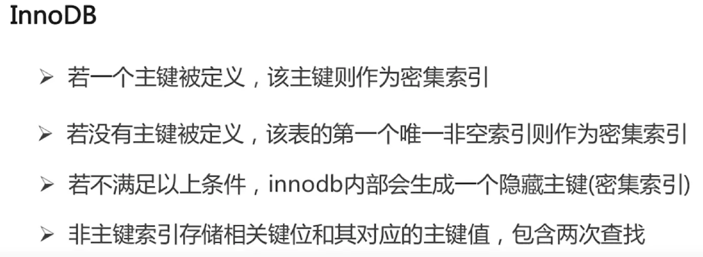 MyISAM 稀疏索引和其他 innoDB 只有密集索引 (聚集索引 非聚集索引)