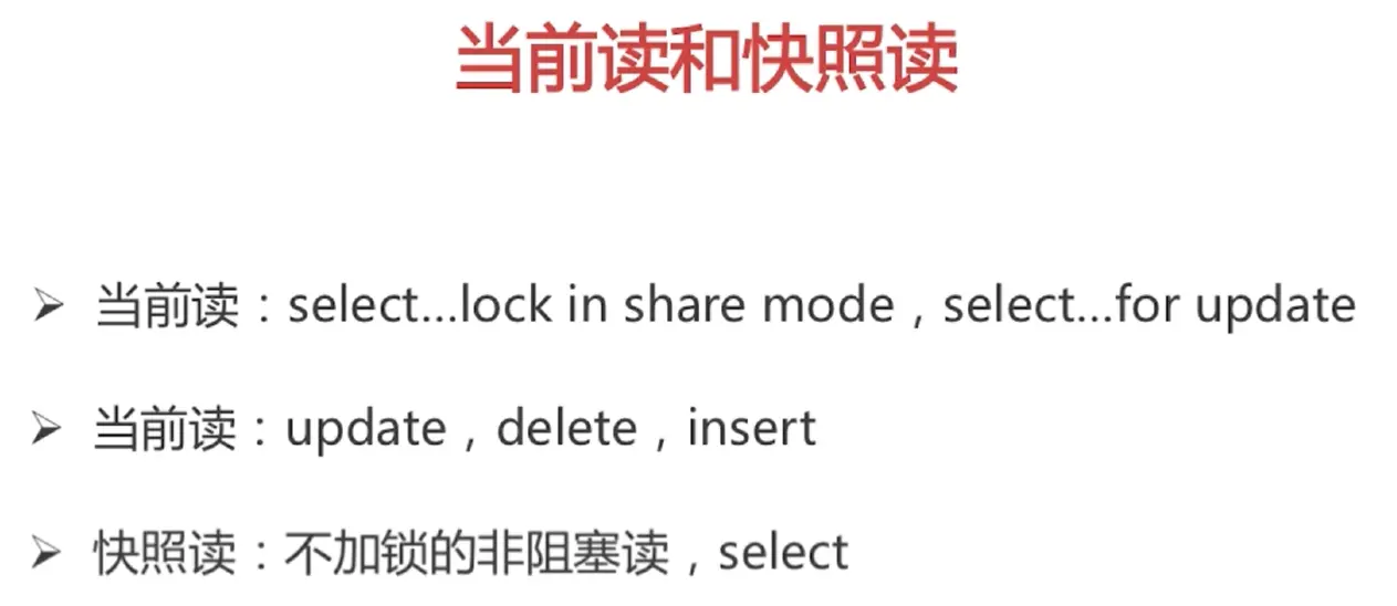 查询上读锁 select * from 表 lock in share mode;(非共享读锁)