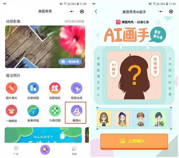 这是一个非常不错好玩的微信小程序,实际上是美图秀秀小程序中的一个功能,能帮我们做出与众不同的头像,我们只需要将自己的照片上传到小程序中,AI画手就能帮我们画出不一样的我们,很是好玩~