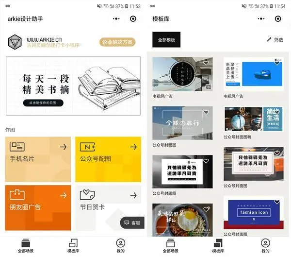 这是一个能作图的微信小程序。在里面有非常多好看的模板供我们选择,不管是微信公众号相关图片还是名片等等的图片,一个小程序就可以帮我们轻松搞定,不用PS不用电脑,简单便捷。