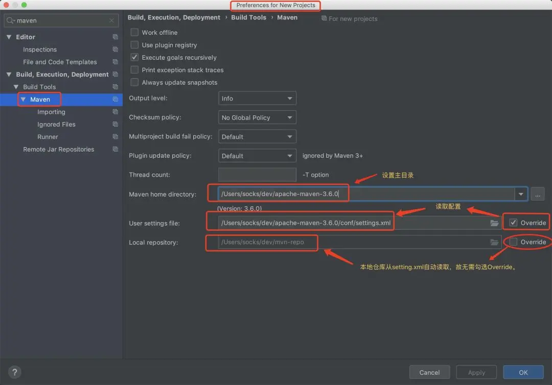 示例:理论上只要配置了Maven主目录即可,实际开发推荐采用User Settins file。