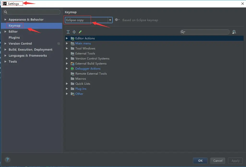 很多人可能并不习惯IDEA的快捷键,为了方便,这里我们将快捷键设置为跟 Eclipse一样。