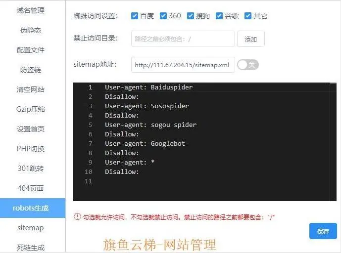 旗鱼云梯针对SEO做了很多的功能和配置,帮助站长管理服务器安全和优化。