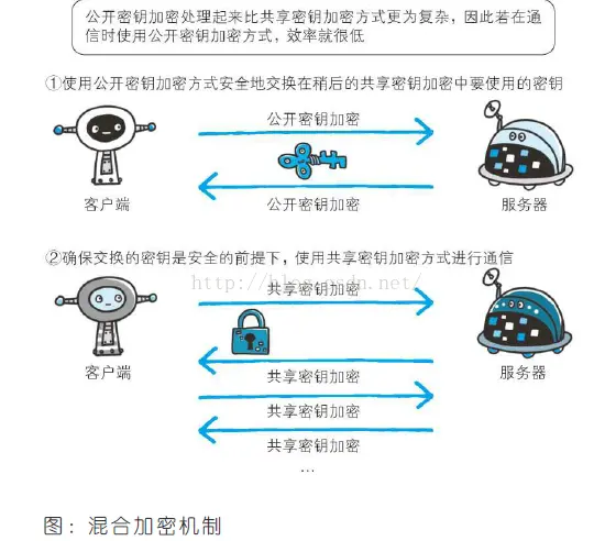 - 但是公开密钥加密与共享密钥加密相比,其处理速度要慢。所以应充分利用两者各自的优势,将多种方法组合起来用于通信。在交换密钥环节使用公开密钥加密方式,之后的建立通信交换报文阶段则使用共享密钥加密方式。