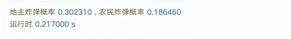 System.out.println(String.format(地主炸弹概率 %f , 农民炸弹概率 %f, diHasBoom * 1.0 / gameTime, nongHasBoom * 0.1 / gameTime));