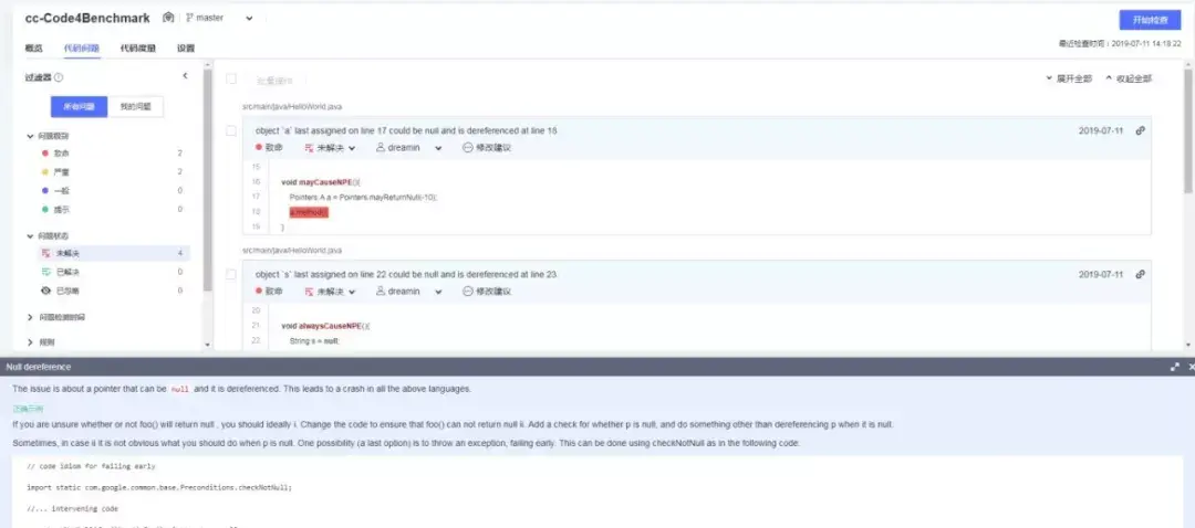 尽管Java开发者能力对于防空是至关重要的,然而人难免会有所失误。为了进一步降低风险,华为云DevCloud建议项目或者产品团队使用代码检查服务来检查是否存在NPE。