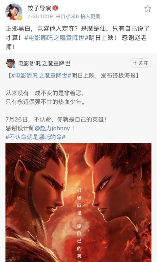 赵力全凭着那颗对设计的初心。做电影海报设计,纯粹是因为他对电影的喜爱。看看他的哪吒之魔童降世海报设计,大红色的配色让人印象深刻,构图大胆,运用了大量的强烈对比,在加上扎实的手绘功底让人印象深刻。