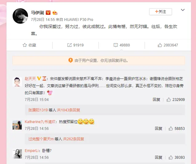马伊琍微博评论