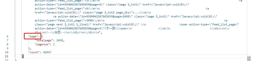 再次观察现在获取到的数据,发现返回的数据还有一个 page 的数据域,如下: