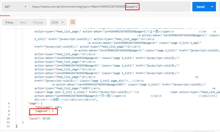 url = 'https://weibo.com/aj/v6/comment/big?ajwvr=6&id=4399042089738682&page=%s' % int(i)