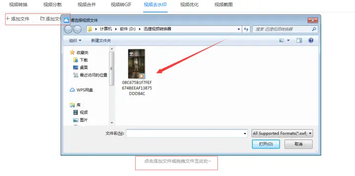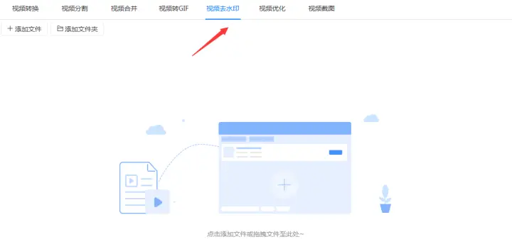 第二步:把需要去水印的抖音短视频添加到软件中,添加时如果文件少可以点击软件左上角的“添加文件”按钮依次添加文件,文件多的话可以点击“添加文件夹”按钮或者用拖拽的方式直接把文件拖拽到软件中。