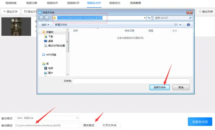 第五步:设置去水印后的视频存储到电脑的“输出路径”。设置时可以在输出路径的输入框中直接填写,或者把路径复制到输入框中,也可以点击“更改路径”按钮选择需要输出到电脑的位置。