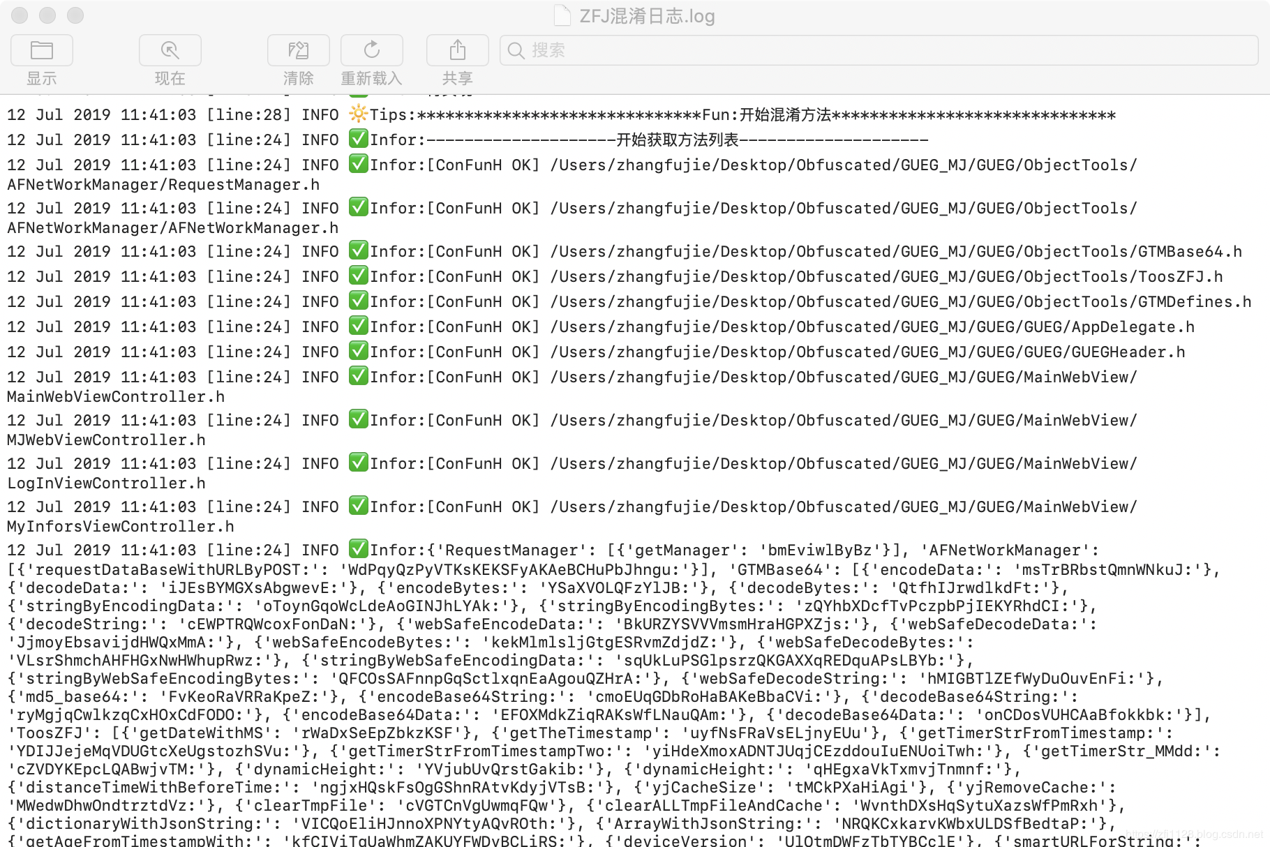混淆的部分日志,混淆的时候回通过import logging自动生成混淆日志《ZFJ混淆日志.log》,便于开发者修改部分报错: