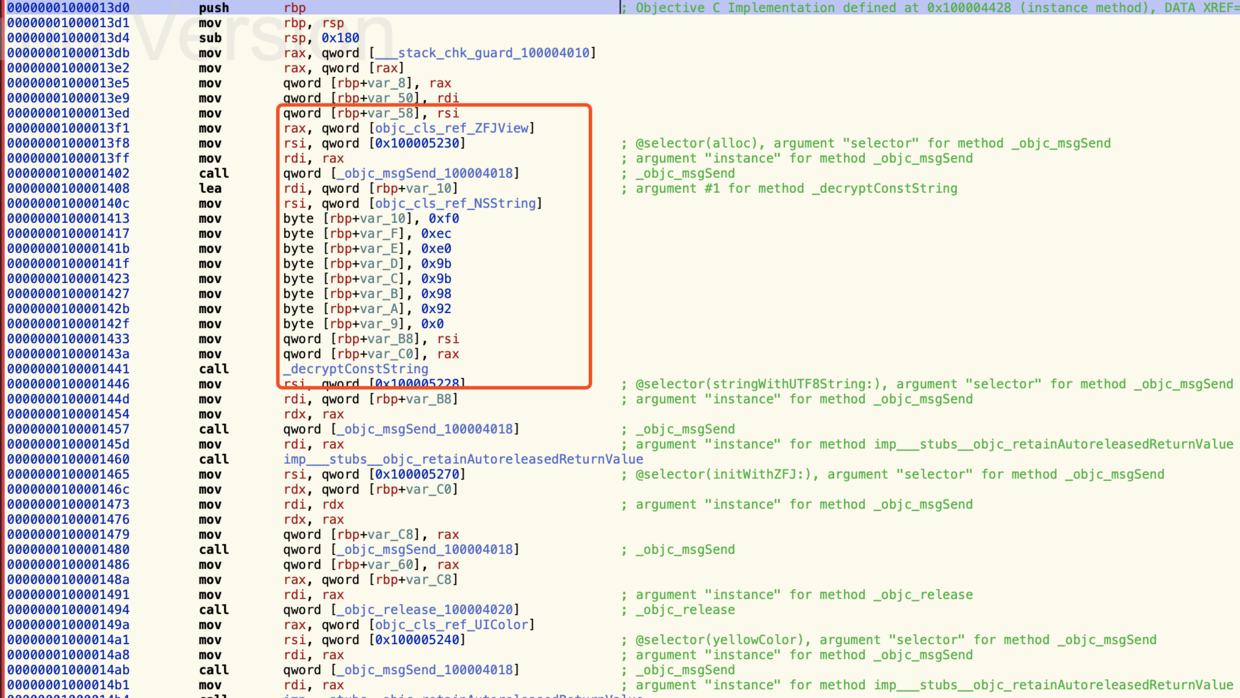 ZFJView *zfjView = [[ZFJView alloc] initWithZFJ:ZFJ_NSSTRING(((char []) {240, 236, 224, 155, 155, 152, 146, 0}))];